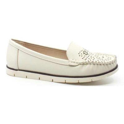 Mocasini dama Maria Conti, din piele, de culoare bej. Sunt decorati in fata cu perforatii.